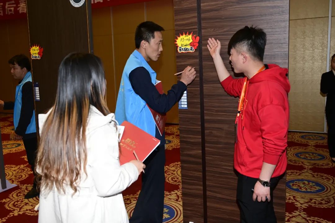 對于經銷商來說,企業產品的品質和技術是否過硬十分重要,是贏得終端消費者青睞的利器,是最好的品牌宣傳籌碼,也是最可靠的盈利保障。為了讓到場的嘉賓朋友們對群喜門業產品有更加深入的了解,在招商會現場群喜門業工作人員們詳細講解產品工藝、材質等,為大家答疑解惑。
